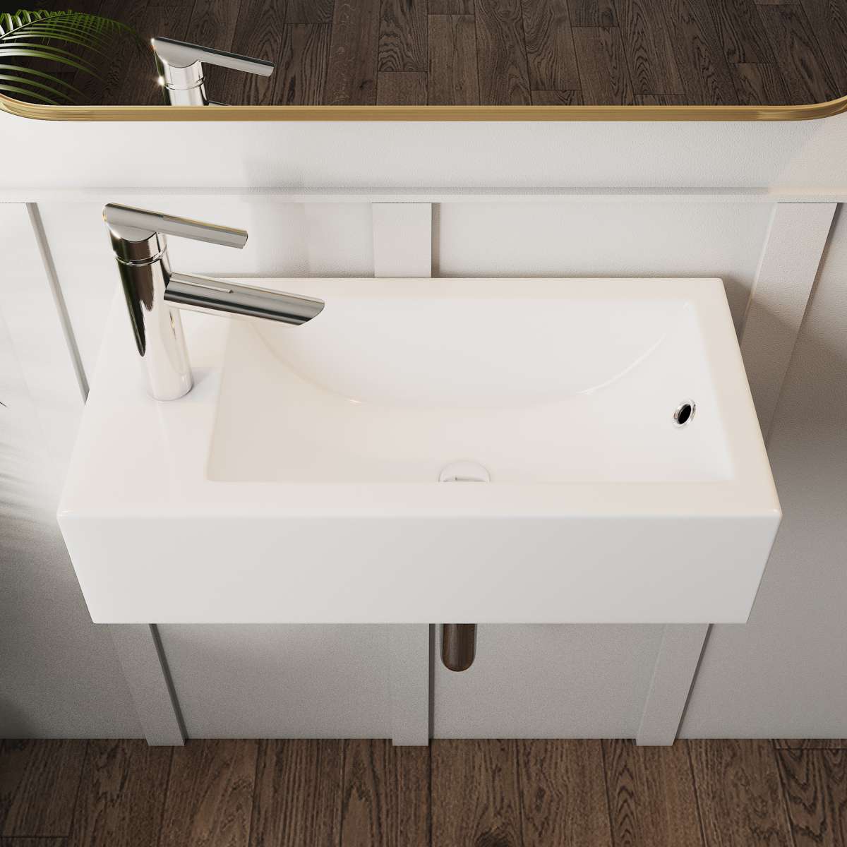 Transform your bathroom with the Brooke 19⅝” Rectangular Vessel Sink, Model 13-0074-W, crafted from premium fireclay. This elegant sink features a sleek rectangular design, offering a modern touch and a spacious basin for daily use. The Brooke Vessel Sink includes a single hole for faucet installation, allowing for a streamlined setup with contemporary single-lever faucets. The side overflow, adorned with a chrome ring, not only enhances the sink’s safety by preventing accidental spills but also adds a touch of refined detail. To ensure a secure installation, the sink comes with a mounting bracket, making it easy to integrate into your bathroom’s design. The fireclay construction provides durability and a smooth, high-gloss finish that resists stains and is easy to maintain. Elevate your bathroom’s style with the Brooke Rectangular Vessel Sink, where modern elegance meets practical functionality.